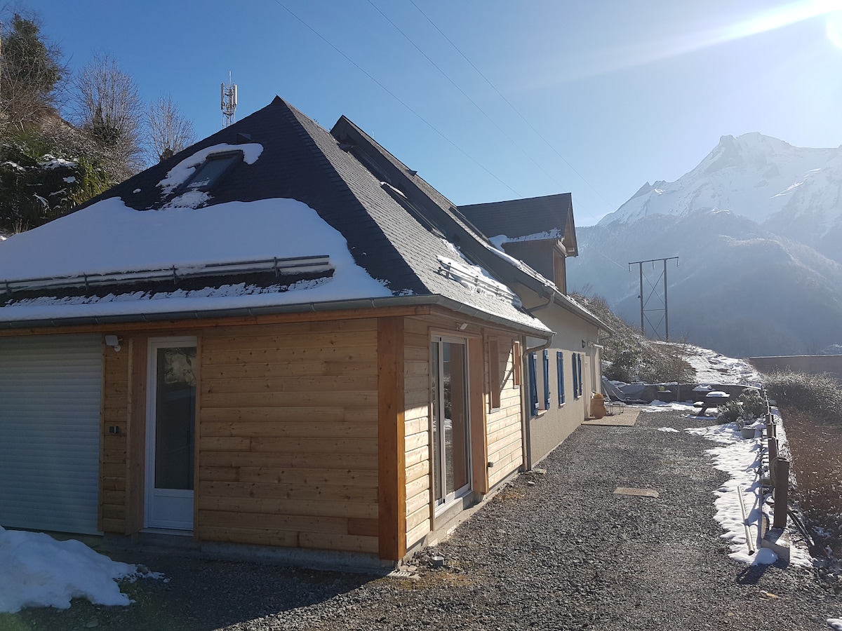 15 λεπτά με το αυτοκίνητο από το Gourette: μικρό σπίτι με νότιο προσανατολισμό, πλήρως εξοπλισμένο, ημιανεξάρτητο με ανεξάρτητη είσοδο και κοινόχρηστο εξωτερικό. Θα εκτιμήσετε την υπέροχη θέα στα γύρω βουνά. Εξοπλισμένη κουζίνα ανοιχτή για το σαλόνι, μπάνιο, ξεχωριστή τουαλέτα, υπνοδωμάτιο στον επάνω όροφο. Πολλές πεζοπορίες και ορεινές δραστηριότητες κοντά. Δεν περιλαμβάνονται τα οικιακά σεντόνια και ο καθαρισμός (είναι δυνατή η ενοικίαση λευκών ειδών κατόπιν αιτήματος: δείτε τους εσωτερικούς κανονισμούς).