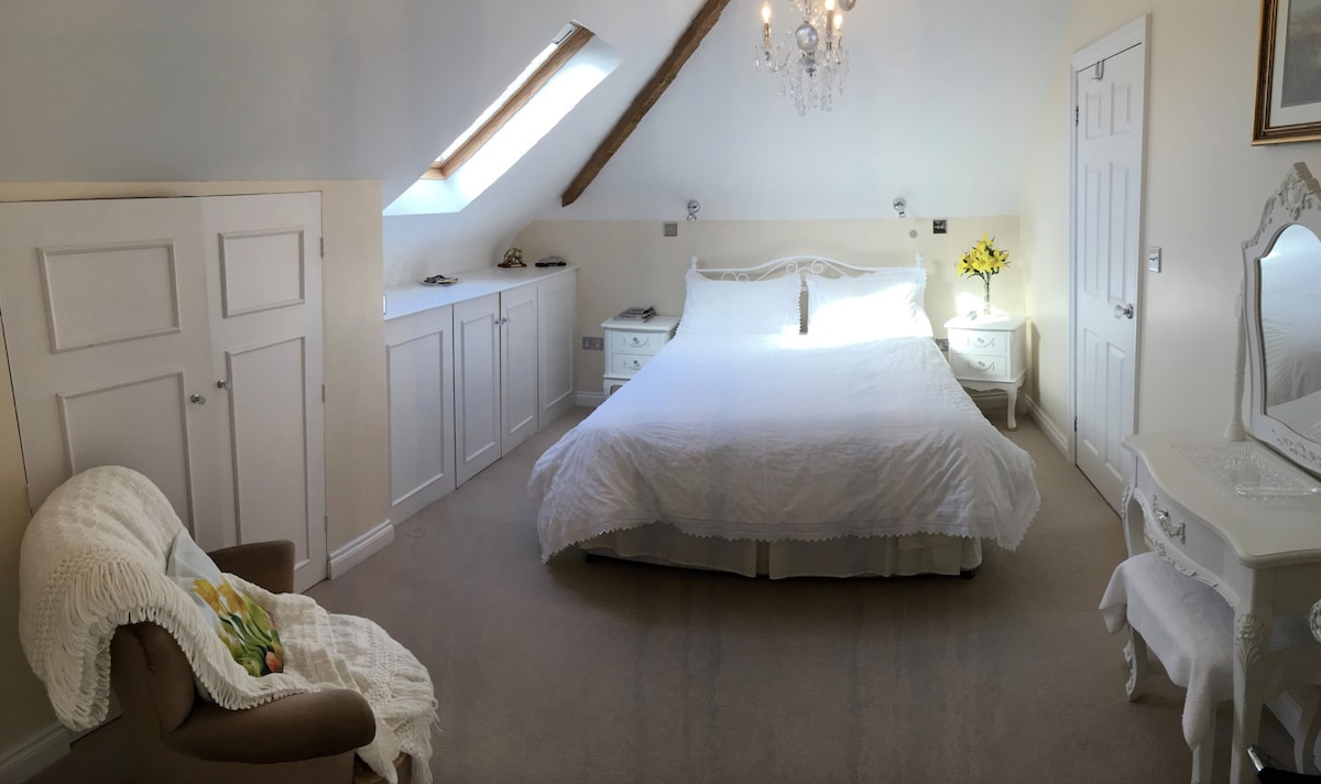 Enjoy modern comfort at our beautifully designed, self-contained 1-bedroom annex. The open-plan living space boasts a stylish lounge with twin sofa beds, a sleek, fully equipped kitchen and breakfast bar Unwind in the spacious bedroom with a plush double bed and a private en-suite featuring a luxurious walk-in shower. With a private entrance, super fast Wi-Fi, Smart TVs and all essential amenities, this peaceful retreat is perfect for solo travellers, couples, or families of up to 4.