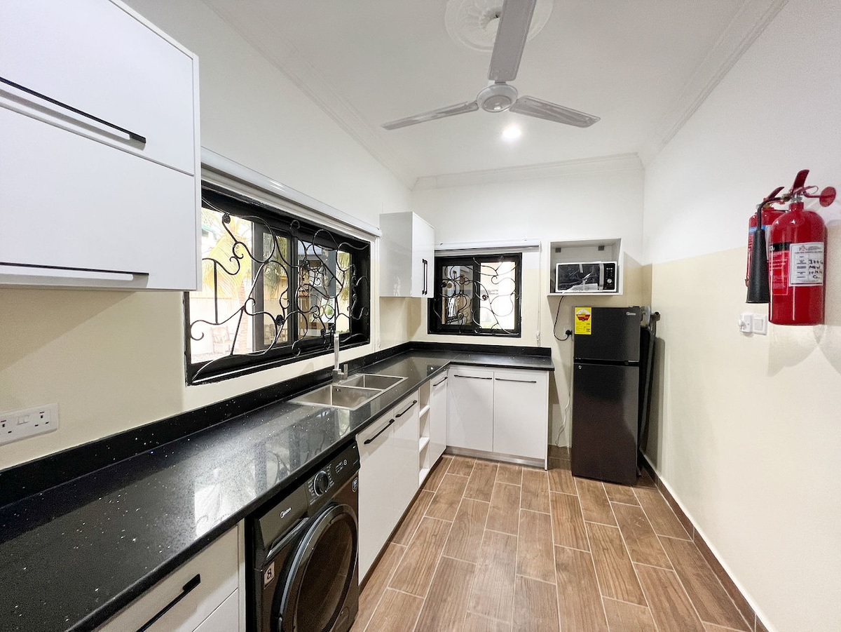Καλώς ήρθατε στον ιδιωτικό ξενώνα σας με 1 υπνοδωμάτιο στο Cantonments, μία από τις πιο ασφαλείς και περιζήτητες γειτονιές της Άκκρα. Αυτό το μοντέρνο καταφύγιο προσφέρει ένα φωτεινό υπνοδωμάτιο με κρεβάτι queen size, άνετο σαλόνι με έξυπνη τηλεόραση, κομψό μπάνιο με ζεστό νερό και πλήρως εξοπλισμένη μικρή κουζίνα. Με κλιματισμό, αξιόπιστο WiFi υψηλής ταχύτητας και 24ωρη ασφάλεια, θα απολαύσετε άνεση και ψυχική ηρεμία. Λίγα λεπτά από πρεσβείες, εστιατόρια, εμπορικά κέντρα και το αεροδρόμιο Kotoka.