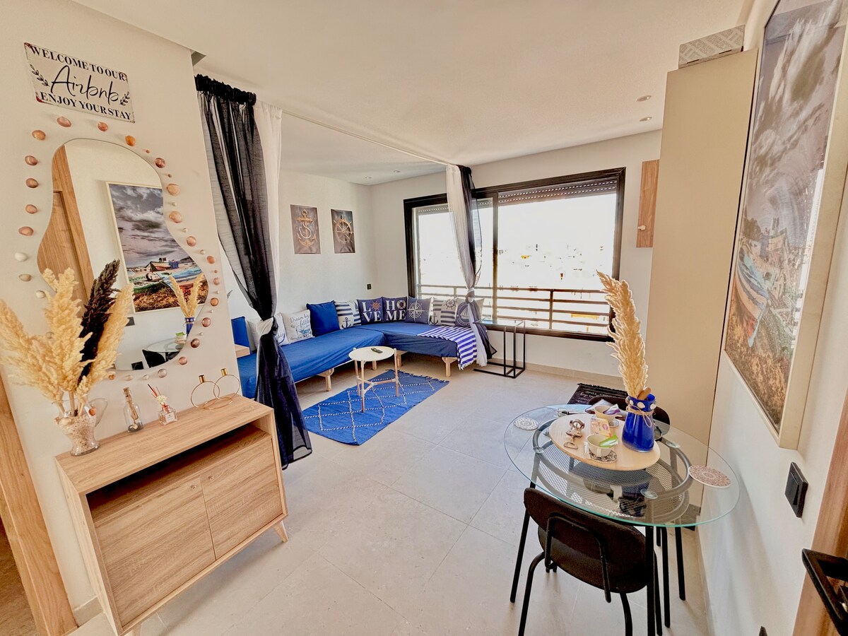 Elevate your stay in this 50sqm boutique studio, where authentic Moroccan warmth meets a breathtaking horizon. Located on the 9th floor with a West-facing orientation, you will enjoy unobstructed views of the Anfa hills and the Atlantic Ocean—the perfect front-row seat for Casablanca’s golden sunsets. We prioritize your comfort with high-end bedding, premium linens, and a cozy, soulful interior design that feels like home.