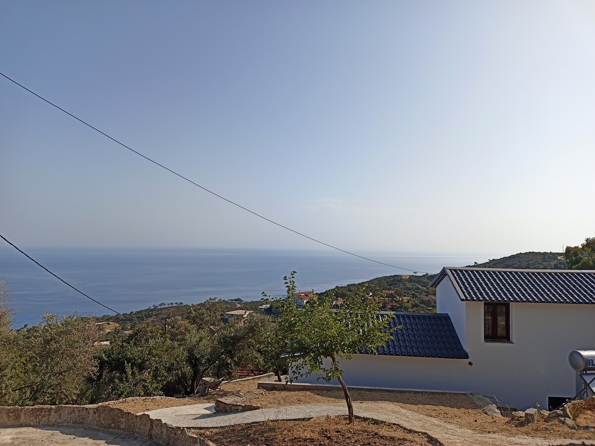 Myrovolos detached cottage with sea view & garden