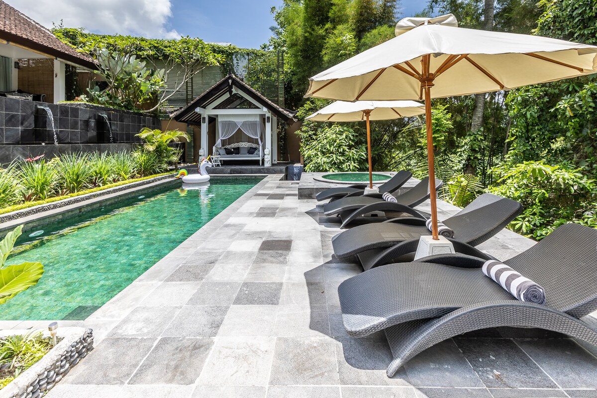 Πολύ περισσότερο από διαμονή, αυτή είναι μια μαγευτική ΕΜΠΕΙΡΙΑ για ταξιδιώτες που αναζητούν μια αξέχαστη, αναζωογονητική βουτιά στα καλύτερα που έχει να προσφέρει το Μπαλί. Μόλις 5 λεπτά με το αυτοκίνητο από το κέντρο του Ουμπούντ, ανακαλύψτε μία από τις πιο ιδιωτικές και αποκλειστικές βίλες στο Μπαλί, με απαράμιλλες ανέσεις σπα: σάουνα ατμού, κρύα πισίνα, υπαίθριο τζακούζι δίπλα στη ζούγκλα, καταπληκτική πισίνα, τα έχουμε όλα. Φέρτε έναν σύντροφο ή φίλους για μια πραγματικά αξιοσημείωτη εμπειρία χαλάρωσης, αυτοεξυπηρέτησης και διασκέδασης.