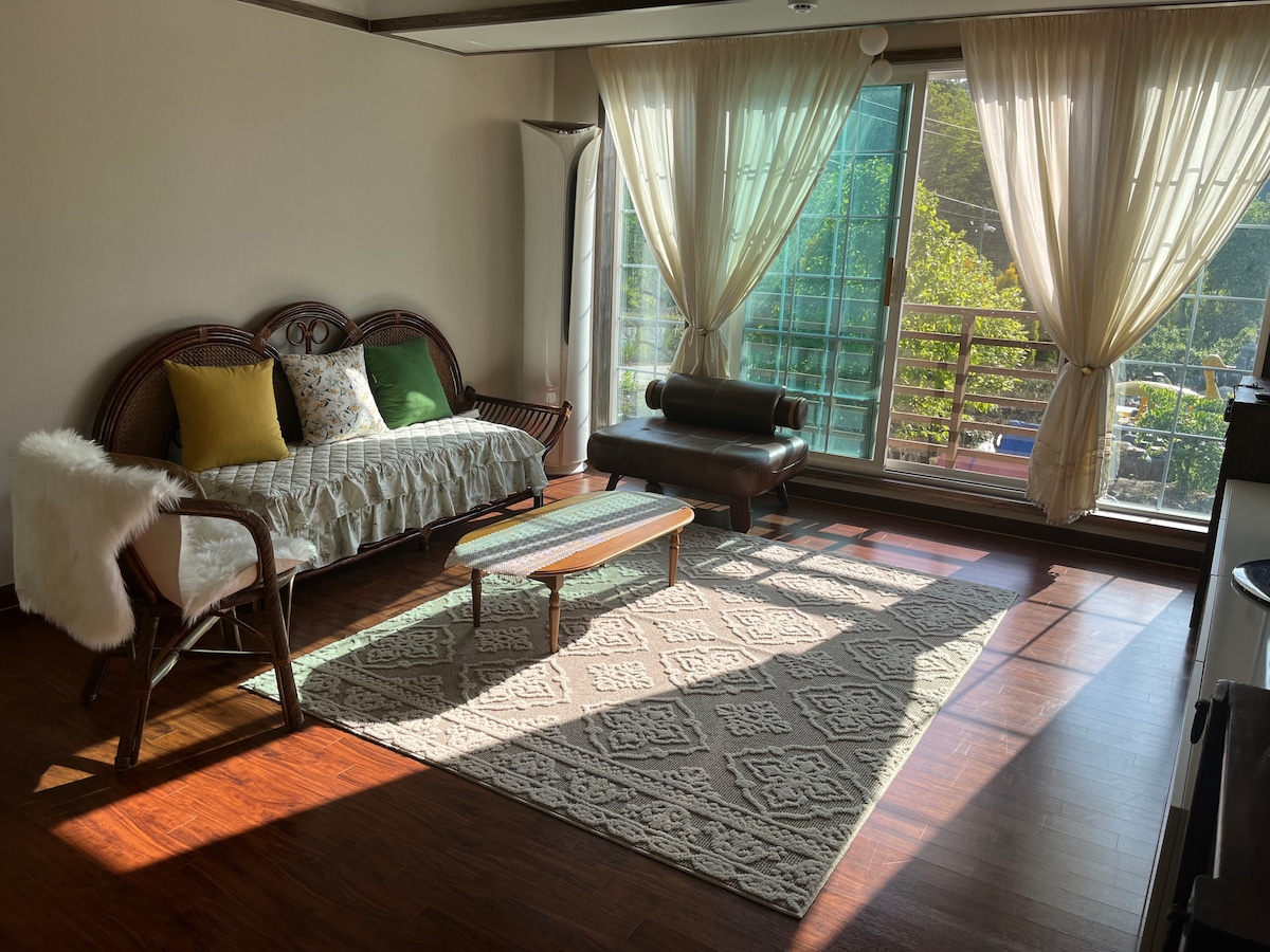 저희 숙소는 요~ 딸들이 가끔 와서 지내는 2층 공간을 에어비앤비로 운영하고 있습니다^^~ 그만큼 애정을 가지고 예쁘고 깨끗하게 유지합니다. 또한 집이 넓고 별도의 테라스 3곳을 특색있게 꾸며놓아 편하게 지내실 수 있습니다.(약 25평) 숙소 앞마당에는 잔디밭이 있어 아이들이 뛰어 놀기 좋고 뒷마당에는 미니 골프 연습장이 있으니 편하게 즐기셔도 됩니다. 또한 차로 3분거리에는 유수풀이 가능한 계곡이 있습니다. 눈이 소복히 내린 겨울에는 숙소 뒷편 태권도원 전망대로 가는 산책길에서 재밌는 썰매를 타실 수도 있습니다. 주변 차로 5분거리에 태권도원 반디랜드 라제통문이 있습니다. 오시는 게스트분들께서 마음껏 웃고 뛰고 도심서 듣지못하실 음악도 마음껏 크게 들으시면 일층 호스트도 힐링하는 마음으로 마음편하답니다~ 도시의 소음을 들려주세요~