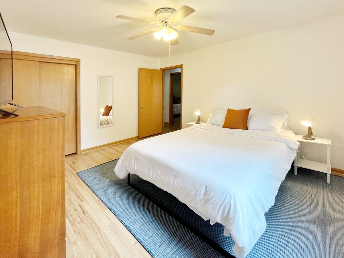 Αυτό το σπίτι με πέντε υπνοδωμάτια και τρία μπάνια σε δύο επίπεδα προσφέρει ένα άνετο καταφύγιο για να χαλαρώσετε με παρέες φίλων ή μεγάλες οικογένειες! Η ανοιχτή διαρρύθμιση μεταξύ του σαλονιού, της τραπεζαρίας και της κουζίνας σάς επιτρέπει να περάσετε ποιοτικό χρόνο μαζί. Στο σαλόνι θα βρείτε μια τηλεόραση με συνδρομή στο YouTube TV και αν θέλετε να περάσετε χρόνο έξω, θα λατρέψετε τη χαλαρωτική βεράντα και την αυλή όπου μπορείτε να χαλαρώσετε και να ξεκουραστείτε!