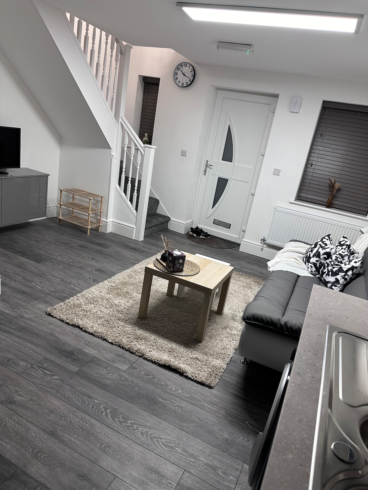 Furnished loft apartment which is open plan. The access to the apartment is through the single door which leads into the hallway. There is one designated secure car parking space for your use, which is to the right hand side of the property door. If you require more parking please let me know.. There is NO facility for EV charging. The closest charging points are in Anstey. ** PLEASE READ ADDITIONAL HOUSE RULES BEFORE BOOKING. These can be found at the bottom. **