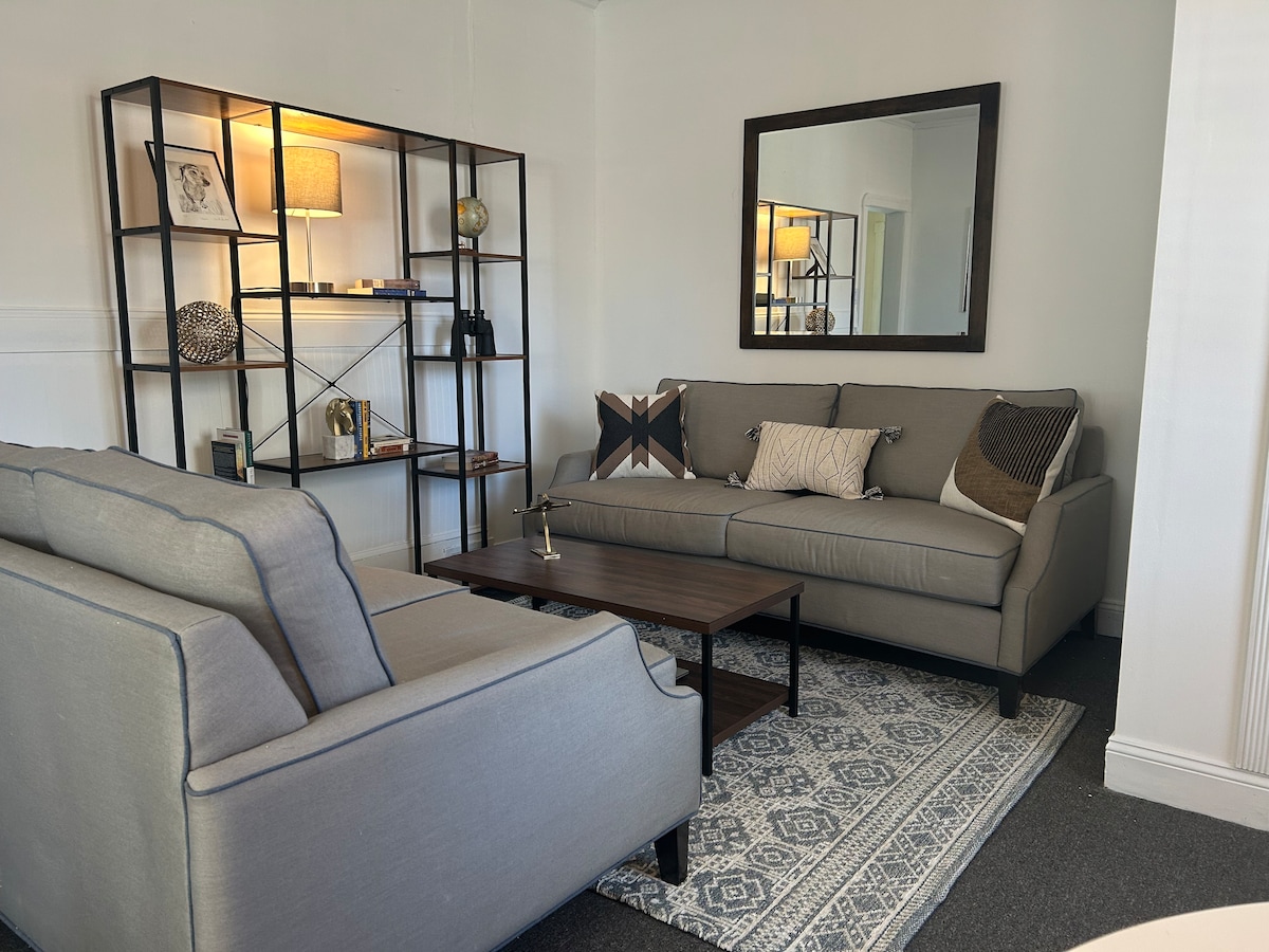 Καλώς ήρθατε στο άνετο σπίτι σας, μακριά από το σπίτι σας! Αυτό το διαμέρισμα με ένα υπνοδωμάτιο, που βρίσκεται στο κέντρο του ιστορικού Woodstown, προσφέρει τον τέλειο συνδυασμό άνεσης και ευκολίας. Με ένα κρεβάτι queen-size, έναν μεγάλο καναπέ και ένα επιπλέον κρεβάτι, αυτή η ευρύχωρη σοφίτα μπορεί να φιλοξενήσει έως και 4 επισκέπτες. Η πλήρως εξοπλισμένη κουζίνα και το πλήρες μπάνιο εξασφαλίζουν ότι έχετε όλα όσα χρειάζεστε για μια άνετη διαμονή, ενώ το πλυντήριο και το στεγνωτήριο κάνουν τις μεγαλύτερες επισκέψεις παιχνιδάκι. Περιλαμβάνονται δωρεάν πάρκινγκ και WiFi.