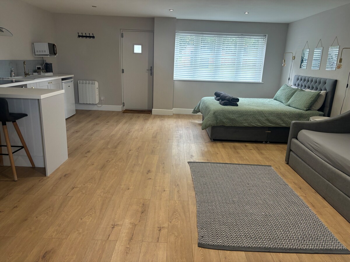 Αυτό το αυτόνομο στούντιο ανοιχτού σχεδιασμού φιλοξενεί 2 άτομα σε 2 μονά κρεβάτια ή 1 υπέρδιπλο κρεβάτι. Φυσικά, το κρεβάτι είναι πάντα σούπερ διπλό, οπότε αν προτιμάτε μονά κρεβάτια, ζητήστε τα τη στιγμή της κράτησης. Υπάρχει ξεχωριστό μπάνιο με ντους και μικρή κουζίνα με μικρό ψυγείο, φούρνο μικροκυμάτων και εστίες. Το στούντιο έχει οροφή σε σχήμα Α, γι' αυτό προσέξτε να μη χτυπήσετε το κεφάλι σας. Βρίσκεται σε ένα υπέροχο εξοχικό περιβάλλον μεταξύ του Στάμφορντ και του Γκράνθαμ.