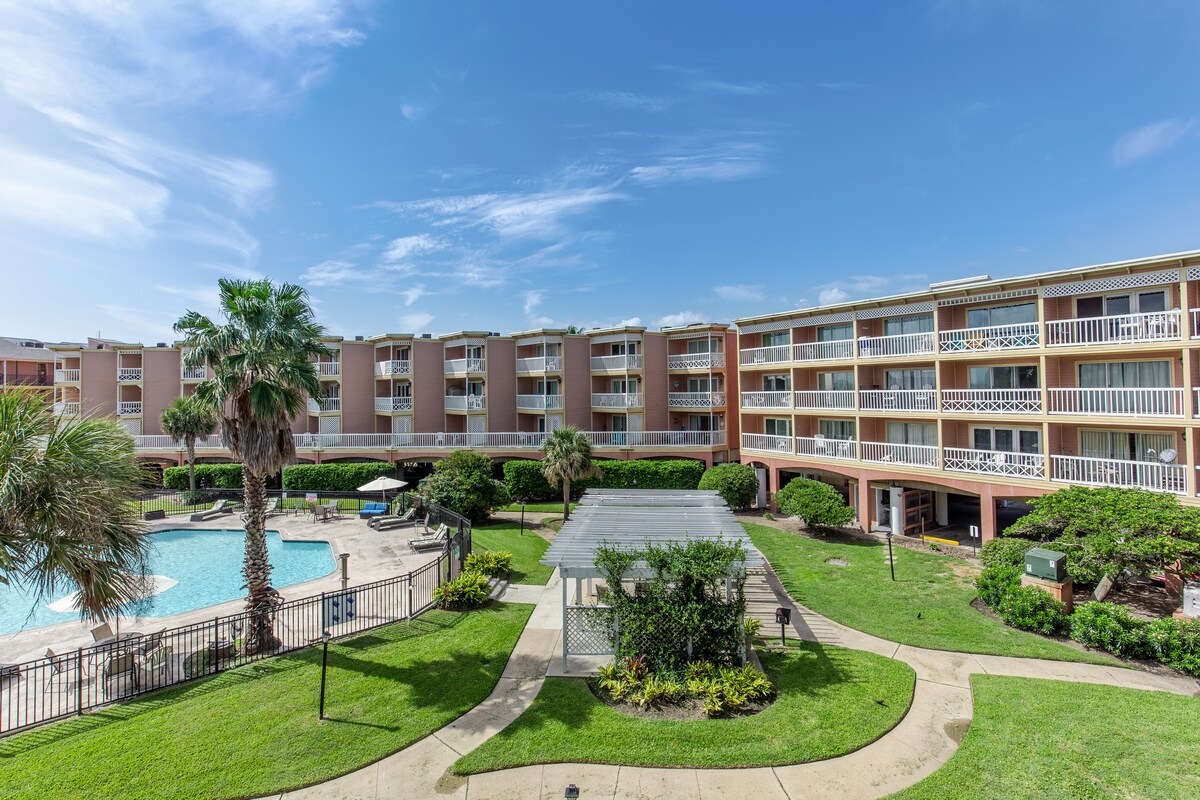 Αυτό το αγαπημένο γωνιακό στούντιο σε παραθαλάσσιο διαμέρισμα μεταξύ Stewart Beach και East Beach έχει ένα μεγάλο μπαλκόνι και εκτεταμένη θέα στον κόλπο. Είναι καλά εξοπλισμένο για δύο ή για μια μοναχική απόδραση. Το θέρετρο προσφέρει πισίνα και pickleball! Δεν υπάρχει δρόμος για να διασχίσετε για να φτάσετε στην παραλία, αλλά το διαμέρισμα είναι κοντά στο κέντρο του Γκάλβεστον και το Seawall. Απολαύστε τα υπέροχα ηλιοβασιλέματα και το φεγγάρι, παρακολουθήστε το κρουαζιερόπλοιο, δείτε τη δραστηριότητα στην παραλία, επιπλεύστε στη θερμαινόμενη πισίνα ή χαλαρώστε και παρακολουθήστε τα κύματα!
