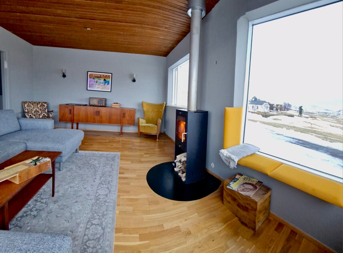 Αυτό το μοντέρνο και ιδιωτικό πολυτελές εξοχικό σπίτι 106 τ.μ. βρίσκεται ακριβώς πάνω από το Akureyri και έχει υπέροχη θέα στην πόλη και τη γύρω φύση. Το σπίτι διαθέτει πλήρως εξοπλισμένη κουζίνα, τηλεόραση επίπεδης οθόνης και Wifi, σύστημα ψυχαγωγίας/επιτραπέζια παιχνίδια και ένα άνετο εσωτερικό τζακούζι για να χαλαρώσετε μετά από μια κουραστική μέρα.