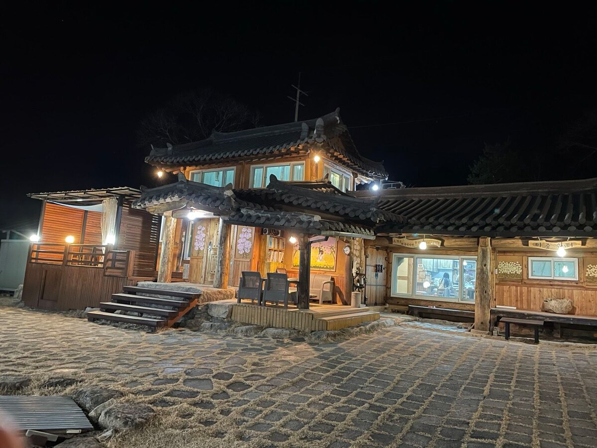 친구들과 감성 힐링 여행 🫧 불멍🎇과 함께 즐기는 바베큐 파티🍖 (✨무료✨) 가족들과 화목하고 조용한 시간을 보낼 수 있어요 공원과 산과 호수로 둘러쌓인 조용하고 자연이 살아있는 마을 속에 위치해있어요. 현대적 감각으로 재탄생한 한옥에서 멋과 정취를 느껴보세요🌿 🐶 강아지가 성장중입니다(since 2021.01) 개를 무서워하시나요? 편하게 알려주세요 ☺️ → 강아지를 무서워하시는 분들을 위해 🐾 강아지가 잠시 케이지나 따로 마련된 공간에서 지낼 거에요. 🥲 부모님 채팅이 무뚝뚝할 수 있어요.. 만나면 따뜻하신 분들입니다.