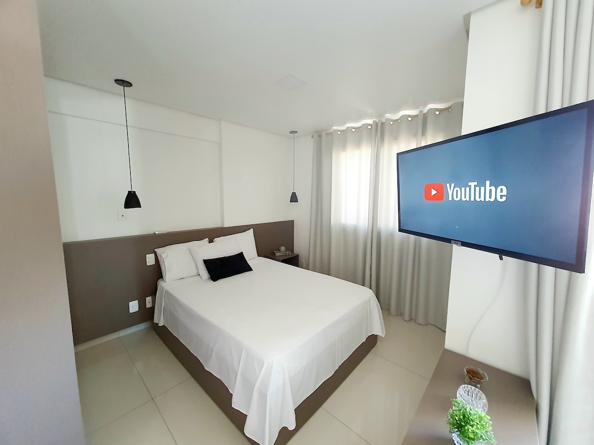 Το διαμέρισμα έχει αρχιτεκτονική υπογεγραμμένη από έναν από τους πιο γνωστούς επαγγελματίες της Γκοϊάνια. Η ιδέα είναι να μπορείτε να νιώθετε σαν στο σπίτι σας κατά τη διάρκεια της διαμονής σας. Όλα αυτοματοποιημένα: φώτα, κουρτίνα, τηλεόραση, κλιματισμός που προσφέρουν άνεση και φινέτσα, απλά ζητήστε από την Alexa. Ακούστε μουσική, παρακολουθήστε περισσότερα από 1.600 ανοιχτά και κλειστά κανάλια. Απολαύστε ένα ωραίο μπάνιο με ένα γενναιόδωρο ντους. Τραβήξτε φωτογραφίες και ξεκουραστείτε στο μπαλκόνι με θέα το ηλιοβασίλεμα και την ακρυλική οροφή.