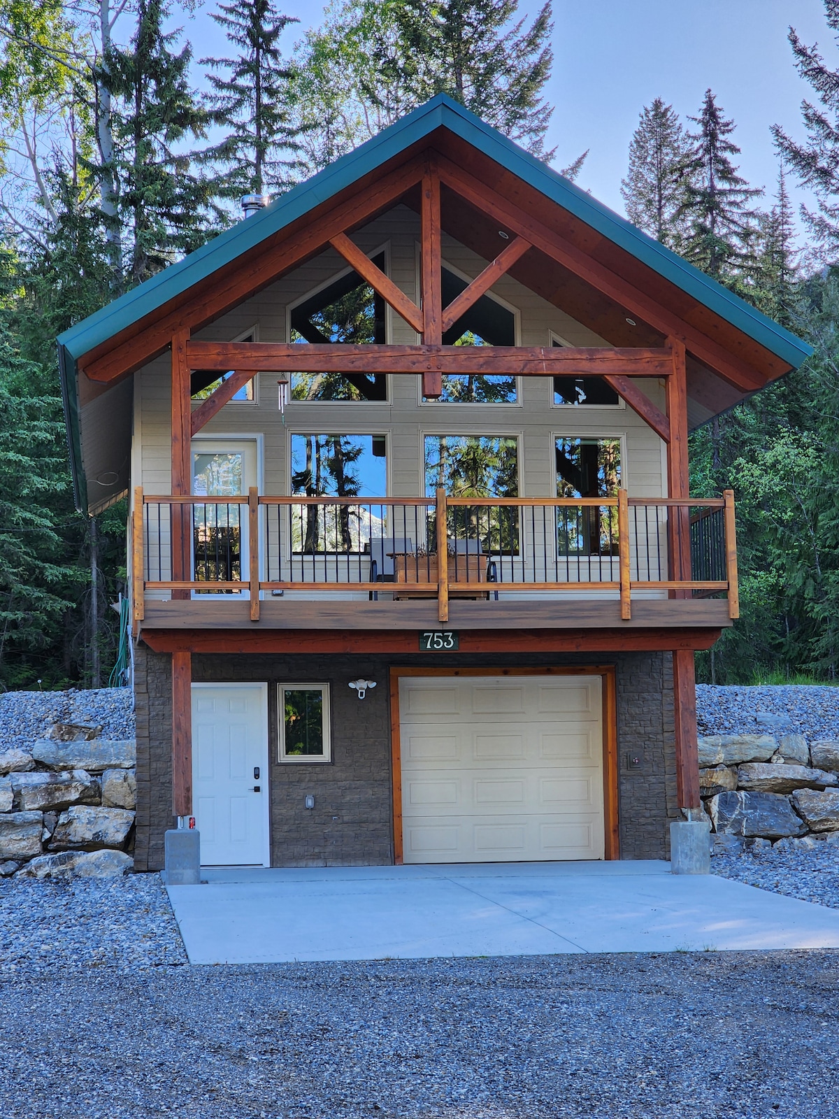 This bright one bedroom cabin holds a rustic charm set in a forested area, located just out of the town of Golden, BC. As the smallest of all the Wild Wood Cabins, the layout of Deer Crossing is cozy and compact, perfect for two guests. There is an open concept bedroom upstairs with a queen sized bed and washroom. Downstairs has the kitchen and living area sharing one open space. A pull-out-couch is included for an extra guest. Two covered decks also allow for more enjoyable times outdoors.