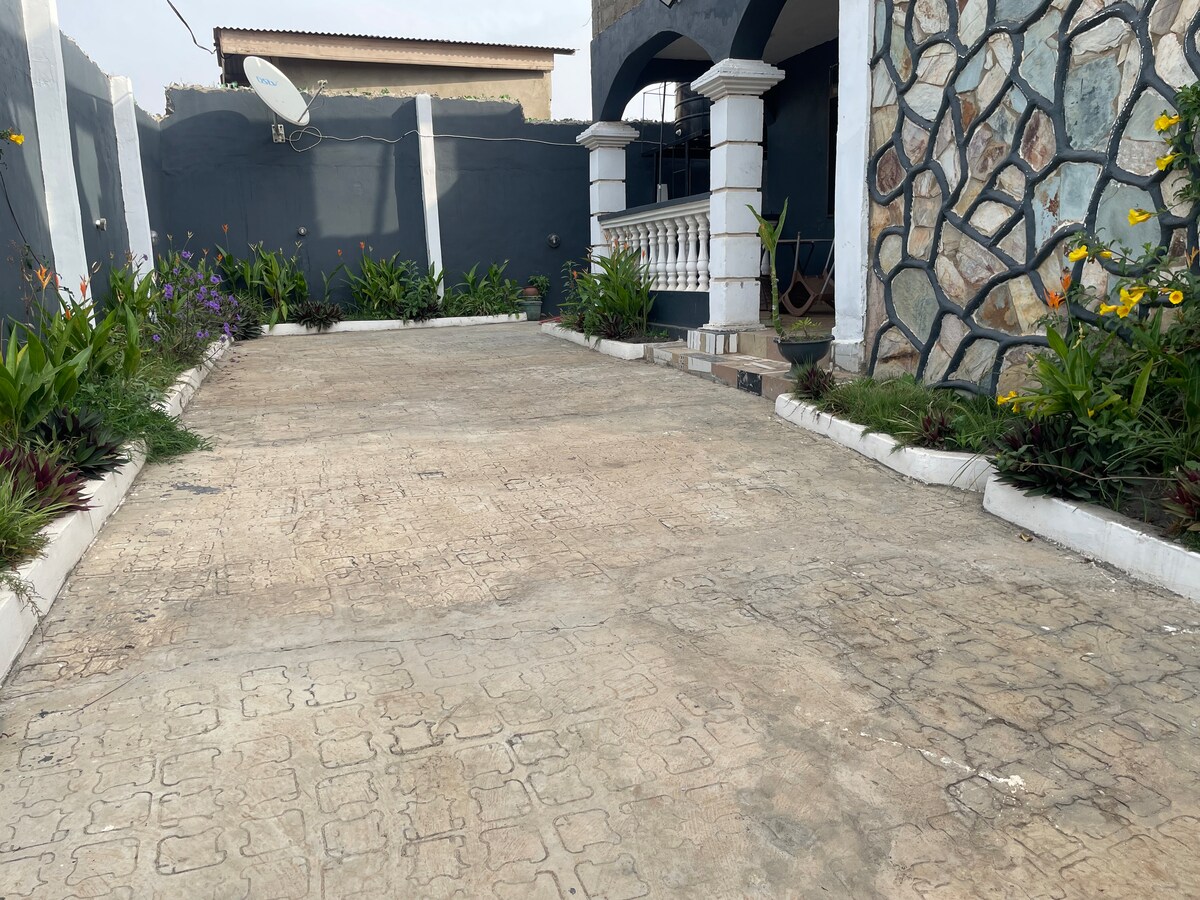 Καλώς ήρθατε στη βίλα E&T. Επισκεφτείτε αυτόν τον υπέροχο χώρο με άφθονο χώρο για διασκέδαση. Αποδράστε στο άνετο καταφύγιό μας, το οποίο βρίσκεται σε ιδανική τοποθεσία στο Γκμπάβε της Άκρα, σε απόσταση περίπου 20 λεπτών με το αυτοκίνητο από το West Hill Mall, το μεγαλύτερο εμπορικό κέντρο στη Δυτική Αφρική, και την ήρεμη παραλία Μπότζο. Η E&T Villa απέχει μόνο 30 λεπτά με το αυτοκίνητο από το αεροδρόμιο. Τα μέσα μαζικής μεταφοράς είναι πολύ προσβάσιμα για να απολαύσετε τη διαμονή σας σε εμάς. Ο δρόμος που οδηγεί στο σπίτι μας είναι λίγο ανώμαλος, αλλά η άνεση που σας περιμένει θα αξίζει τον κόπο. Κλειστό κύκλωμα ασφαλείας 24 ώρες το 24ωρο, 7 ημέρες την εβδομάδα, για επιπλέον ασφάλεια.