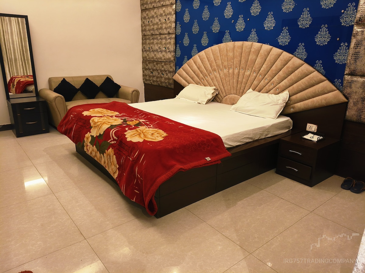 Located in the heart of Lucknow, our guest house is designed to offer a blend of comfort. it is well-furnished spacious rooms equipped with air-conditioning, comfortable double beds, clean linens, attached western-style bathrooms with 24x7 hot and cold water, LED TVs to ensure a seamless stay for all guests. Rooms are cleaned daily to maintain utmost hygiene standards. Each room has ample natural light, elegant curtains. For guests arriving by car, we have adequate parking space within.