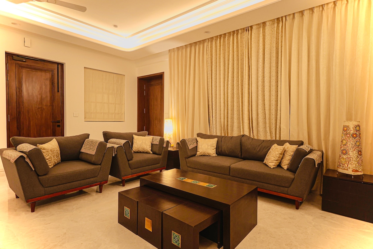 Μείνετε με στιλ στο ευρύχωρο κατάλυμά μας των 2.100 τετραγωνικών ποδιών. Κατοικία 3 υπνοδωματίων στο ισόγειο στην κομψή περιοχή Gomti Nagar. Ιδανικό για επαγγελματικά ταξίδια, διασκέδαση ή οικογενειακές αποδράσεις, συνδυάζει άνεση, κομψότητα και ευκολία. Είμαστε υπερήφανοι Superhost στην Airbnb με πάνω από 350 διαμονές 5 αστεριών και εξαιρετικές κριτικές από επισκέπτες. Μόλις 30 λεπτά από τον σταθμό Charbagh και 30 λεπτά από το αεροδρόμιο Lucknow (T3), με πάρκα, καφέ και αγορές σε κοντινή απόσταση. Απολαύστε ζεστή φιλοξενία και μια διαμονή που θα σας κάνει να νιώσετε σαν στο σπίτι σας, αλλά ακόμα καλύτερα.
