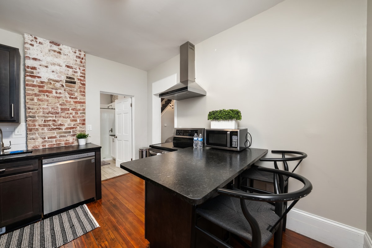 Our Boutique Luxury Brownstown provides guests with first class ammenities and style, while being one block from High Street and heart of the Short North with restaurants, shops + bars. Renovated in 2022, the space features original, refinished hardwood floors with a gorgeous stair, high end kitchen finishes with quartz tops, and two private en-suites with modern tile and oversized showers weith bench seats. If you are looking for an boutique experiance, there is nothing better in Columbus