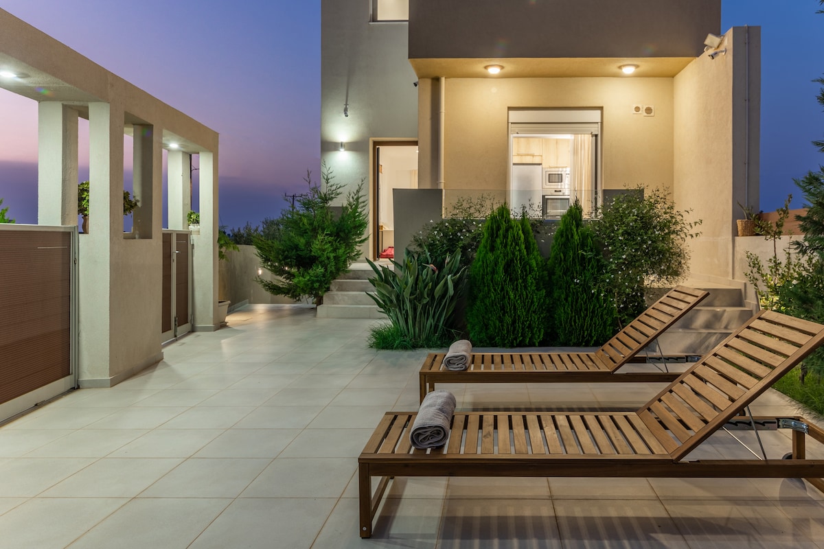 Villa Vido is an island-style villa located in Karteros-Heraklion. Located 9 km from the city centre, 5 km from the Heraklion airport and 1 km from the Karteros beach, the villa is a unique destination for relaxation and easy access to many locations. Enjoy the panoramic view of the island Dia and the endless azure of the Aegean Sea. In the spacious garden with the small chicken house, there are fresh fruits, vegetables and eggs and they are offered to you when available.