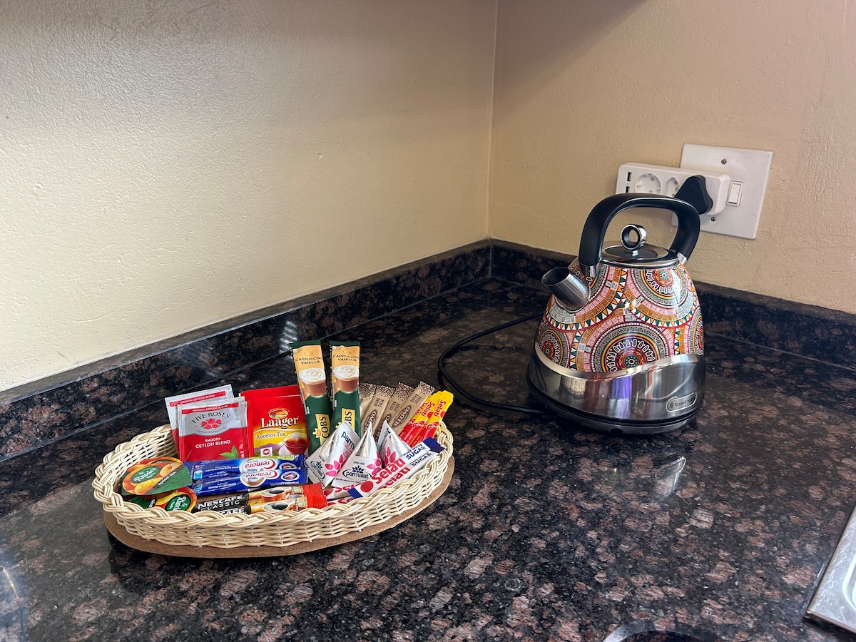 Γοητευτικό διαμέρισμα 1 υπνοδωματίου με ιδιωτική είσοδο, ιδανικό για ζευγάρια και λάτρεις των κατοικίδιων. Ανοιχτή διαρρύθμιση, πλήρως εξοπλισμένη κουζίνα με εστίες υγραερίου και ηλεκτρικό φούρνο. Ιδιωτική αυλή, μη καπνιστών, άνετο κρεβάτι queen size, σύστημα συναγερμού και υπηρεσία καθαριότητας. Περιλαμβάνει πλυντήριο ρούχων, χωρίς εφεδρική τροφοδοσία. Διατίθενται κουπόνια γεύματος για το εστιατόριο Eish, 5 λεπτά με το αυτοκίνητο. Εμπορικό κέντρο Secunda (3 λεπτά) και Sasol Main Gate (7 λεπτά), ιδανικό για αναψυχή και επαγγελματικές διαμονές. Απολαύστε έναν συνδυασμό άνεσης, ευκολίας και ασφάλειας σε ένα γαλήνιο περιβάλλον.