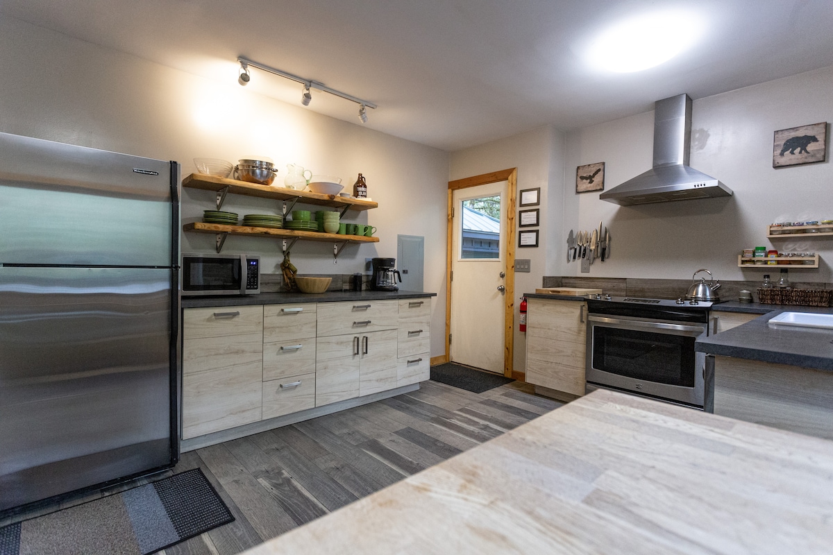 Αυτό το φωτεινό, μοντέρνο, ιδιωτικό σπίτι 2400 τετραγωνικών ποδιών βρίσκεται στην καρδιά του Όρους Hood στο Rhododendron, OR. Με εκπληκτικούς 1,5 στρέμματα καλλιτεχνικά διαμορφωμένων κήπων που περιβάλλονται από δάσος, μπορείτε να χαλαρώσετε στη βεράντα των 600 τετραγωνικών ποδιών ή να κάνετε ποδήλατο, πεζοπορία, σκι και παπούτσια χιονιού στο όμορφο Mt. Ακούστε τους ήχους του Clear Creek κοντά σε αυτή την ήσυχη ιδιωτική γειτονιά.