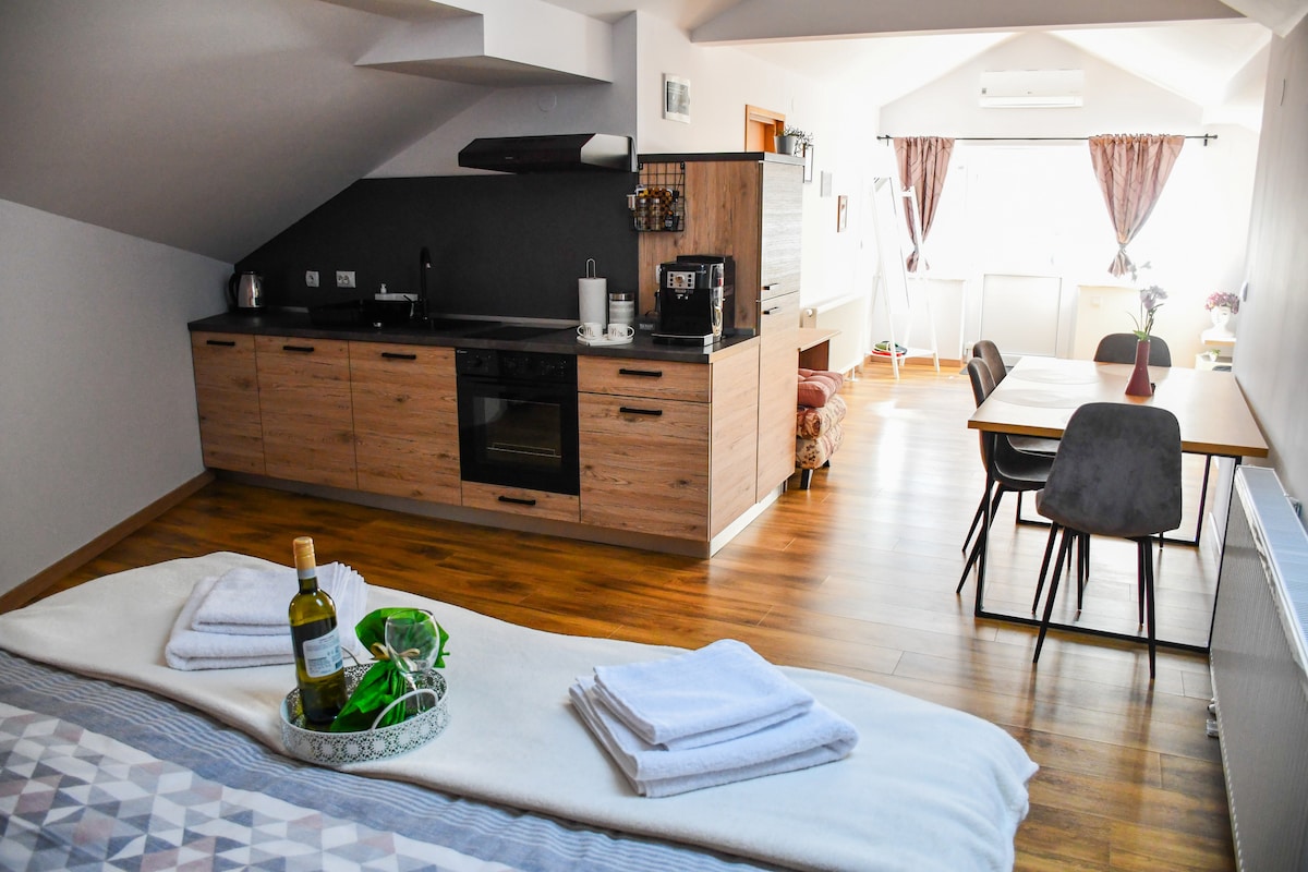 Καλωσορίσατε στο πρόσφατα ανακαινισμένο στούντιο διαμέρισμά μας στην Kutina. Ιδανικό μέρος για ζευγάρια ή μεμονωμένους ταξιδιώτες. Το διαμέρισμα διαθέτει ένα γαλλικό κρεβάτι, ένα μοντέρνο ντους, μια μικρή κουζίνα και μια καφετιέρα για μια άνετη διαμονή. Το διαμέρισμα βρίσκεται σε ήσυχο σημείο του κέντρου της πόλης. Κανόνες σπιτιού: Δεν επιτρέπεται το κάπνισμα. Δεν επιτρέπονται τα κατοικίδια, εκτός από μικρά και ήρεμα. Μέγιστος αριθμός επισκεπτών: 2 και ένα παιδί που κοιμάται με τους γονείς. Άφιξη από τις 2:00 μ.μ., αναχώρηση έως τις 11:00 π.μ. Μειώστε τον θόρυβο μετά τις 10 μ.μ.