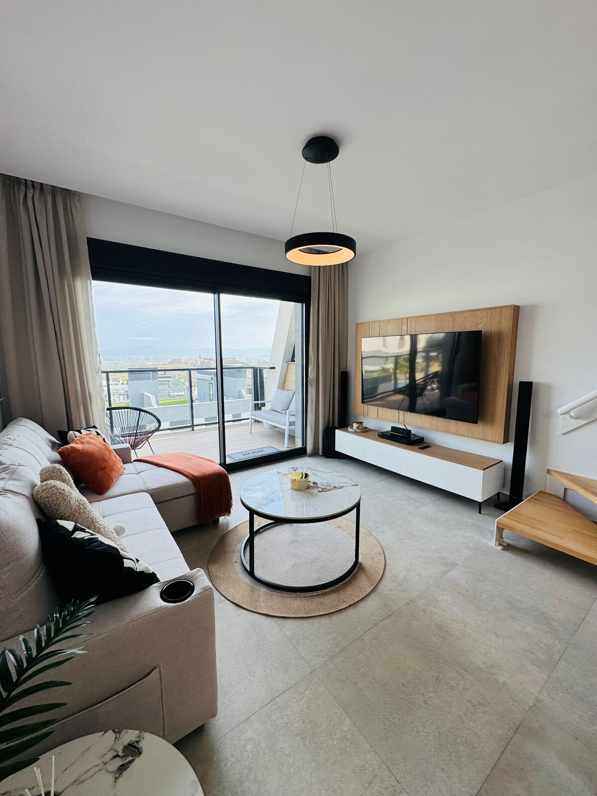 Καλωσορίσατε στο ηλιόλουστο και κομψά επιπλωμένο ρετιρέ μας με ατμόσφαιρα Ίμπιζας/Μαρόκου. Σε κοντινή απόσταση με τα πόδια από την παραλία. Απολαύστε την ύπαιθρο στο ευρύχωρο μπαλκόνι με θέα στη θάλασσα ή αποδράστε στη μεγάλη ιδιωτική ταράτσα, όπου μπορείτε να κάνετε ηλιοθεραπεία, μπάρμπεκιου ή να πιείτε ένα ποτό με ηρεμία. Ως επισκέπτης, μπορείτε επίσης να χρησιμοποιήσετε το κοινόχρηστο τζακούζι, δύο μεγάλες πισίνες και μια παιδική πισίνα, ιδανική για οικογένειες. Περιλαμβάνεται ιδιωτικός χώρος στάθμευσης. VT-511692-A