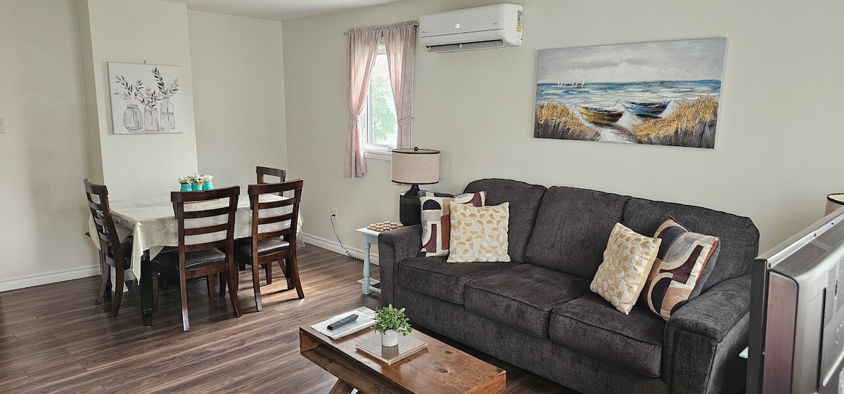 This quaint & cozy suite is conveniently located in the heart of Bishop's Falls. Margie's Place is fully furnished & consists of 2 bedrooms, 1 bathroom fully equipped kitchen, electric fireplace, private entrance & parking. Within minutes of hiking/ walking trails & quick access to the Exploits River for salmon fishing, kayaking & canoeing as well as easy access to ATV/snowmobile trails. We are just a 10 minute drive to Grand Falls-Windsor a perfect home away for any medical or shopping stays
