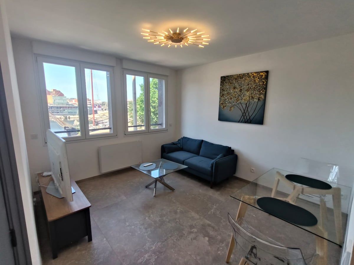 Όμορφο νέο διαμέρισμα στον δεύτερο όροφο με άμεση θέα στη μαρίνα της Δουνκέρκης. Φωτεινό, προσεκτικά διακοσμημένο, προσφέρει ένα άνετο σαλόνι, μια εξοπλισμένη κουζίνα, ένα ήσυχο υπνοδωμάτιο, ένα μοντέρνο μπάνιο. Μαρμάρινο πάτωμα, κομψή και χαλαρωτική ατμόσφαιρα. Σε απόσταση αναπνοής από την παραλία, το κέντρο της πόλης και τα καταστήματα. Ιδανικό για μια ήρεμη διαμονή ανάμεσα στη θάλασσα και την κομψότητα.