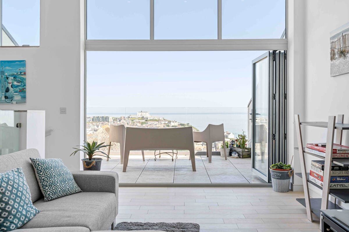 Με εκπληκτική θέα στη Μεγάλη Δυτική Παραλία, το The Rocks είναι ένα ήρεμο, μοντέρνο διαμέρισμα ενός υπνοδωματίου, στον πρώτο όροφο, σε έναν ήσυχο δρόμο, δύο λεπτά με τα πόδια από την πόλη και τις κύριες παραλίες. Παρακολουθήστε την ανατολή του ηλίου από το ιδιωτικό σας μπαλκόνι. Το φως που πέφτει από την ανατολική πλευρά γεμίζει μια γωνιά τραπεζαρίας με θέα στη θάλασσα. Σχεδιασμένο για αργά πρωινά και εύκολα βράδια. Γρήγορο Wi-Fi, τηλεόραση Smart TV, ψυγείο, πλυντήριο πιάτων, καφετιέρα με κάψουλες, ιδιωτικό πάρκινγκ, check-in χωρίς παρουσία οικοδεσπότη και φιλόξενη υποδοχή σκύλων - η ιδανική βάση στην Κορνουάλη καθ' όλη τη διάρκεια του έτους.