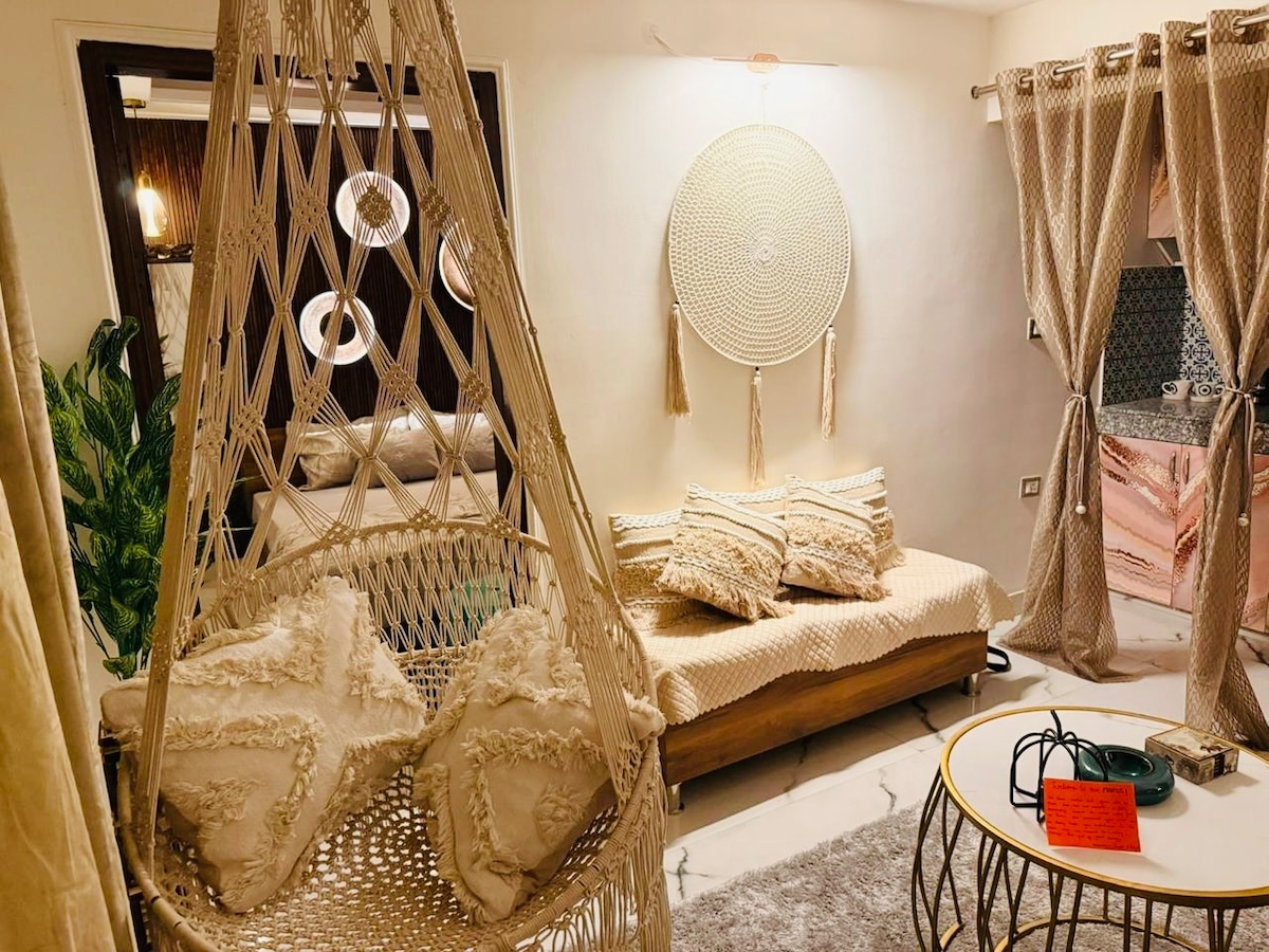 Αυτό το πολυτελές 1 υπνοδωμάτιο στο Greater Kailash I προσφέρει μια κομψή, στιλάτη απόδραση με κομψούς λευκούς τοίχους, Wi-Fi υψηλής ταχύτητας, έξυπνη τηλεόραση και ανοιχτή μικρή κουζίνα. Το υπνοδωμάτιο διαθέτει υπέρδιπλο κρεβάτι με κουρτίνες συσκότισης, ενώ το μπάνιο διαθέτει τζακούζι, ατμοσφαιρικό φωτισμό και ντους με νερό που θυμίζει βροχή. Ιδανικό για ρομαντικές αποδράσεις, μεμονωμένους ταξιδιώτες ή επαγγελματικές διαμονές, απέχει λίγα λεπτά από τις ζωντανές αγορές, τις καφετέριες και το μετρό του Γκουανγκζού.
