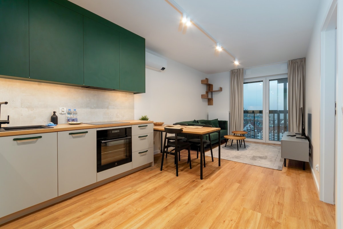 Ένα αποκλειστικό, μοντέρνο και λειτουργικό διαμέρισμα με υπνοδωμάτιο, μεγάλο σαλόνι με όμορφη θέα στο Βρότσλαβ. Βρίσκεται σε μια νέα πολυκατοικία στον 13ο όροφο με δικό της υπόγειο χώρο στάθμευσης και ασφάλεια 24 ώρες το 24-ωρο. Η πλήρως εξοπλισμένη κουζίνα σάς επιτρέπει να προετοιμάσετε σπιτικά γεύματα. Τα υψηλά πρότυπα, η άνεση, η ασφάλεια και η αίσθηση της ιδιωτικότητας κάνουν τους επισκέπτες να νιώσουν σαν στο σπίτι τους. Ασύρματο Internet και Netflix. Πρόσβαση στο γυμναστήριο, σάουνα ξηρού και ατμού, τζακούζι και παιδικό δωμάτιο για παιχνίδι.