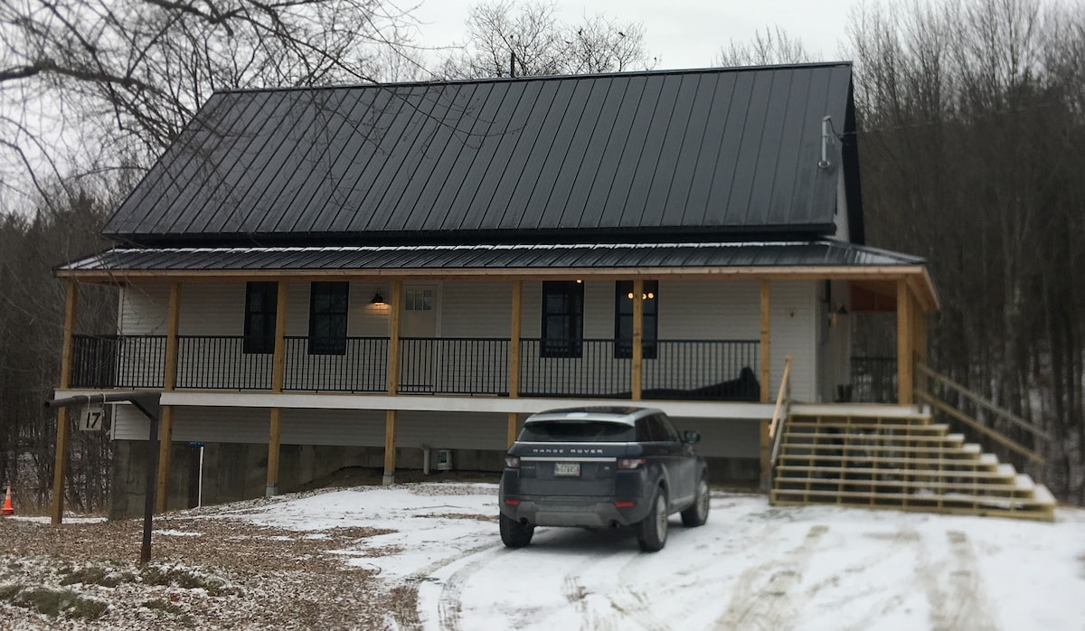 Newly built guesthouse above owner's garage with insane sunrises & great view. Property is located on 36 acres, owner lives on site in a separate house with her 3 dogs, 1 exceptionally lazy cat and 4 rogue chickens (they may all come visit you!). Grounds have ancient apple trees, loads of perennial gardens with more in progress, berries and an organic vegetable garden that we would love to share from if desired. Please do not hesitate to ask any questions! We hope to meet you soon!