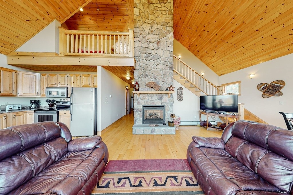 Welcome to the Mad Moose Lodge! Year-round adventures begin at this 2-bed, 2.5-bath Stoneham chalet. This vacation rental provides incredible fall foliage views and easy access to mountains and lakes! Close by to cross-country skiing and snowshoeing in the winter and hiking, mountain biking, boating and swimming in the summer there are endless options of outdoor enjoyment. Enjoy stunning sunsets over the mountains from the comfort of the couch, or while enjoying a game of pool in the game room!