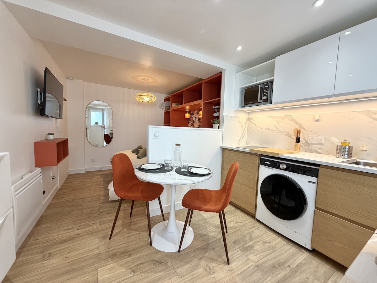 Αυτό το ευρύχωρο διαμέρισμα 2 δωματίων 43 τ.μ. που ανακαινίστηκε πλήρως το 2024 σας καλωσορίζει για μια άνετη διαμονή στην καρδιά μιας όμορφης γειτονιάς στο κέντρο της Γκρενόμπλ. Αποτελείται από ένα υπνοδωμάτιο, έναν καναπέ-κρεβάτι, ένα μπάνιο, ξεχωριστή τουαλέτα, ένα ανοιχτό σαλόνι / κουζίνα και 2 μπαλκόνια. Βρίσκεται στον 9ο και τελευταίο όροφο με ασανσέρ, διαθέτει βεράντα 30 τ.μ. με πανοραμική θέα στο Βερκορ και τη Βαστίλη.