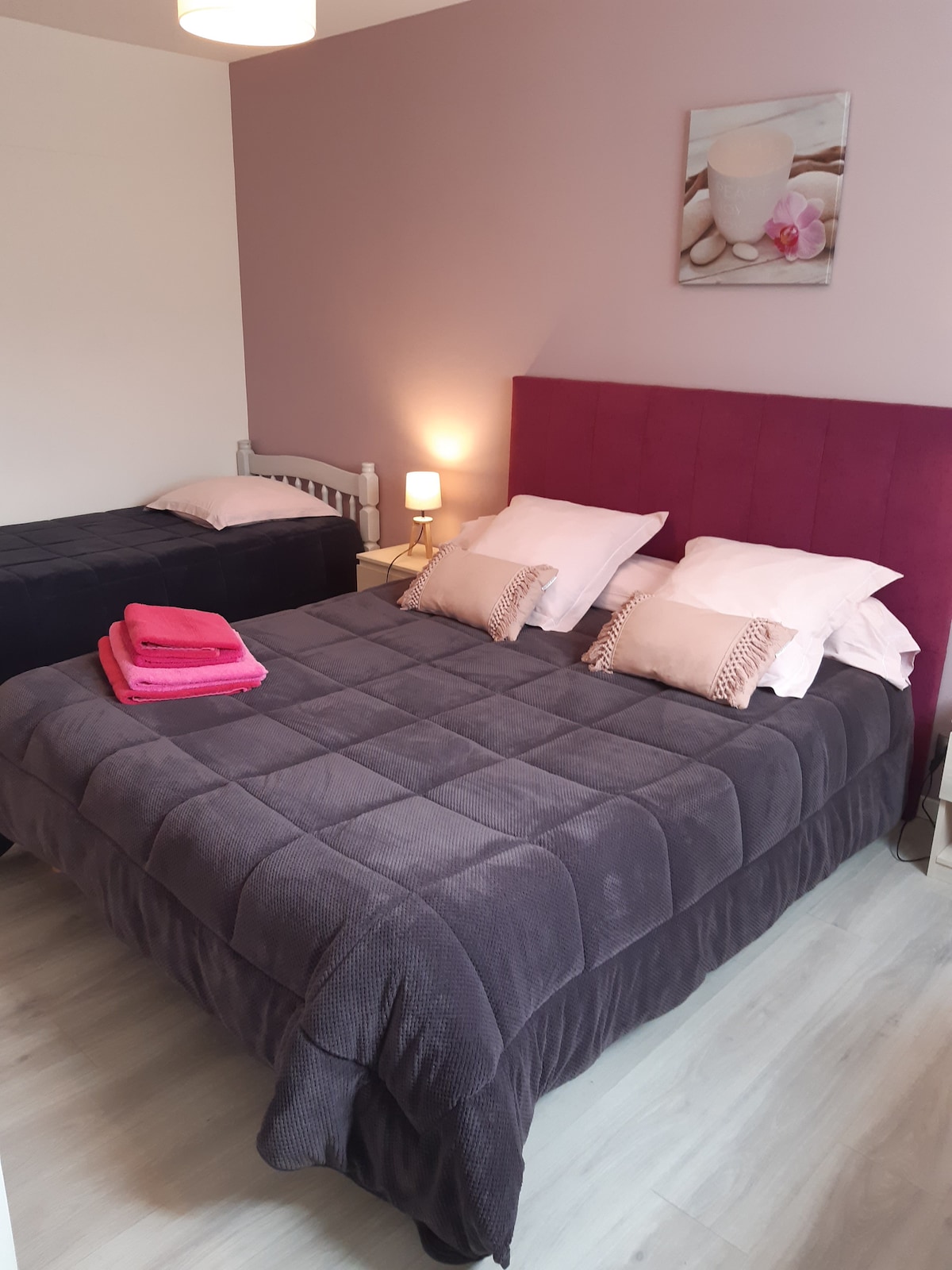 Je vous propose une chambre spacieuse de 14 m² (avec un lit de 160*200, la télévision et le Wifi gratuit) au 1er étage de mon habitation. Ce niveau vous sera réservé. Vous disposerez de votre salle de bains privative avec double vasque et WC. Si vous le souhaitez, vous pourrez également bénéficier du parking fermé. Les petits déjeuners sont servis dans la pièce à vivre ou en terrasse lorsque la météo le permet. Le prix comprend la taxe de séjour et le petit déjeuner pour 2 personnes .