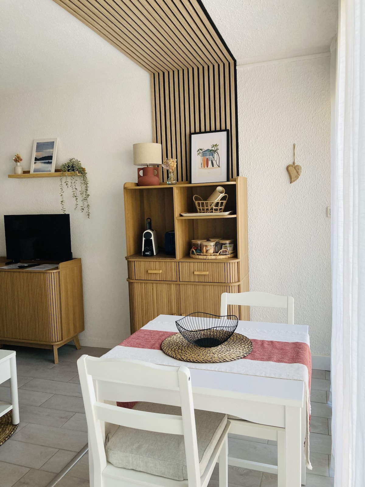 Το στούντιο που βρίσκεται στην καρδιά του 3 Gruissan βρίσκεται σε μια κατοικία με χώρο στάθμευσης, στον 2ο όροφο χωρίς πρόσβαση με ασανσέρ. Βρίσκονται μόλις 5 λεπτά με τα πόδια από το χωριό, 10 λεπτά από το λιμάνι, 25 λεπτά (7 λεπτά με το ποδήλατο) από τα σαλέ της παραλίας. Το στούντιο με τη βεράντα του, προσφέρει εκπληκτική θέα στις λίμνες, τη θάλασσα, τα αλατωρυχεία και 2 βήματα από το δρόμο που οδηγεί στα σαλέ, με ποδηλατόδρομο. Άνετο, μοντέρνο, εξαιρετικά εξοπλισμένο: Κλιματισμός, Ίντερνετ, Πισίνα 06/15-09/15, 2 ποδήλατα, κλινοσκεπάσματα και πετσέτες μπάνιου Ένα πραγματικό Cocon