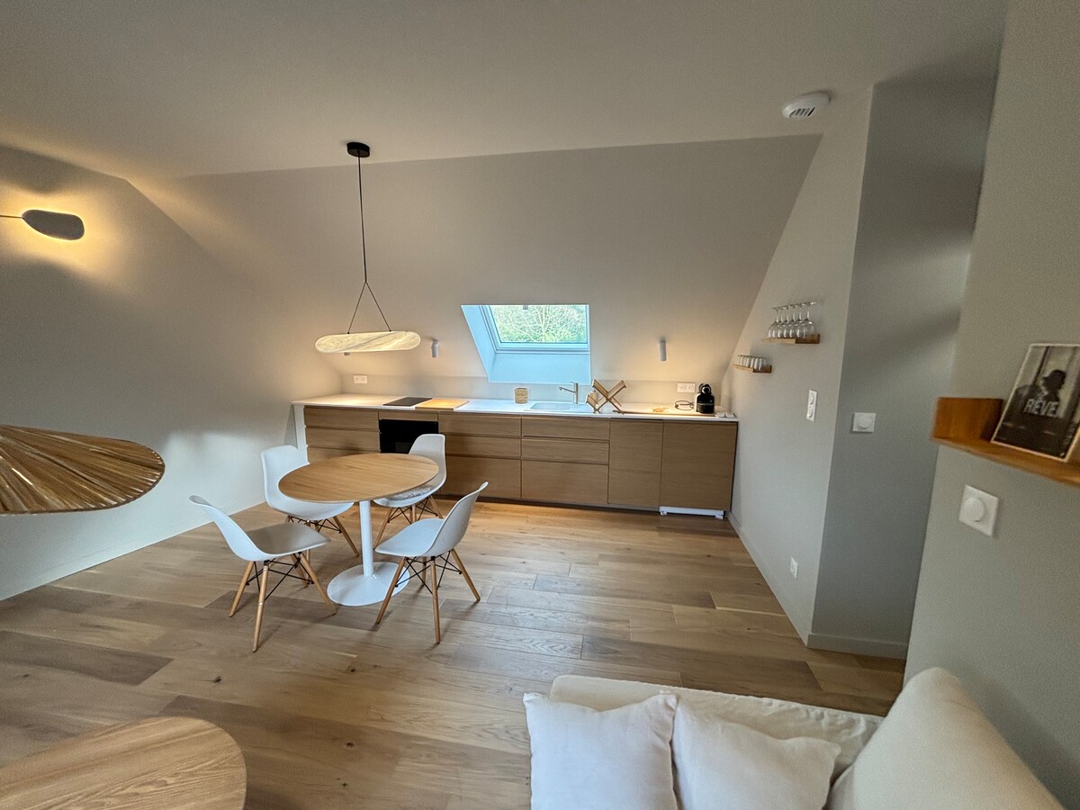 Αχυρώνας που ανακαινίστηκε το 2017 και περιλαμβάνει 4 κατοικίες, περιτριγυρισμένος από πράσινο και πολλά άλογα. Ένα καταφύγιο γαλήνης 10 λεπτά από τη Λιλ με πρόσβαση σε μέσα μαζικής μεταφοράς Αυτό το κατάλυμα 33 τ.μ. με εκλεπτυσμένη διακόσμηση προσφέρει πραγματική άνεση: κλινοσκεπάσματα υψηλής ποιότητας, ηλεκτρικές συσκευές (πλυντήριο πιάτων, φούρνος, φούρνος μικροκυμάτων, πλυντήριο ρούχων, ψυγείο,) τηλεόραση, wifi ... Το κατάλυμα διαθέτει επίσης έναν καναπέ-κρεβάτι ✨