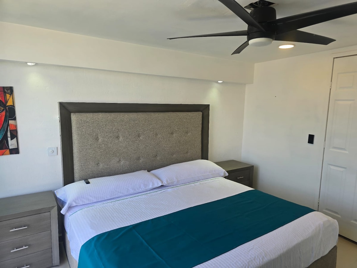 Disfruta tu estancia en nuestra habitación con cama king y balcón. Cuenta con aire acondicionado, pantalla Smart TV, secadora de cabello, clóset, internet Wi-Fi, agua potable rellenable, escritorio, amenidades de baño y tocador, así como agua caliente las 24 horas. Todo en un espacio amplio, seguro y confortable diseñado para tu descanso.