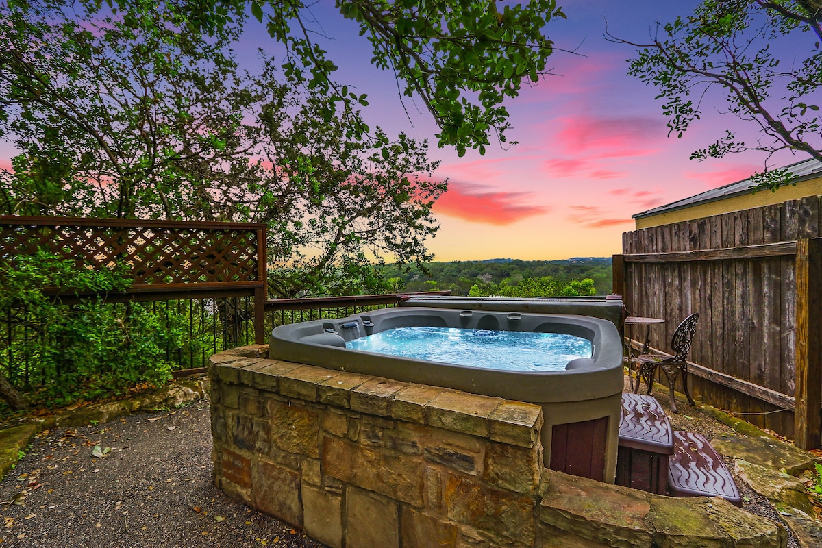 Escape to this peaceful private upstairs suite, perfect for couples seeking a romantic getaway. Enjoy your own hot tub, cozy king bed, and a secluded deck made for stargazing. Just minutes from Lake McQueeney, the Guadalupe River, and New Braunfels, this charming studio offers the ideal blend of comfort, privacy, and Hill Country charm. Relax, reconnect, and unwind in your own slice of Texas tranquility.
