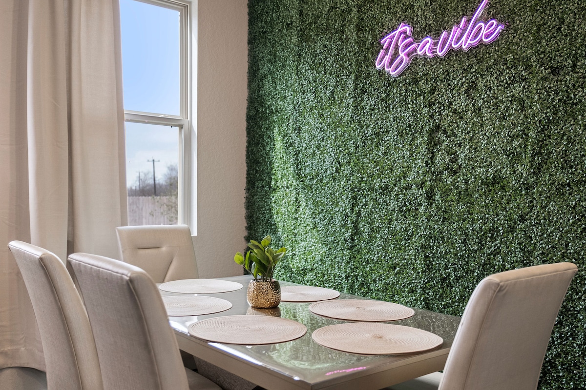 Το κατάλυμά μας βρίσκεται στο Alamo Ranch, μια βολική πολυτελή γειτονιά στο Σαν Αντόνιο του Τέξας. Διαθέτει 4 υπνοδωμάτια και μπορεί να φιλοξενήσει έως και εννέα επισκέπτες. Η αίθουσα κινηματογράφου διαθέτει τηλεόραση 85" 4k και ανακλινόμενες καρέκλες, ενώ μια γωνιά ανάγνωσης παρέχει έναν άνετο χώρο μόνο για παιδιά. Η πίσω αυλή προσφέρει παιδική χαρά, σκεπαστή αυλή και χώρο μπάρμπεκιου. Σημαντικά αξιοθέατα όπως το Εθνικό Σύμπλεγμα Σκοποβολής, το Lackland AFB, το Seaworld και το Fiesta Texas βρίσκονται όλα σε κοντινή απόσταση. Δωμάτιο ✔ κινηματογράφου ✔ Εξωτερικό σετ παιχνιδιού ✔ Μπάρμπεκιου