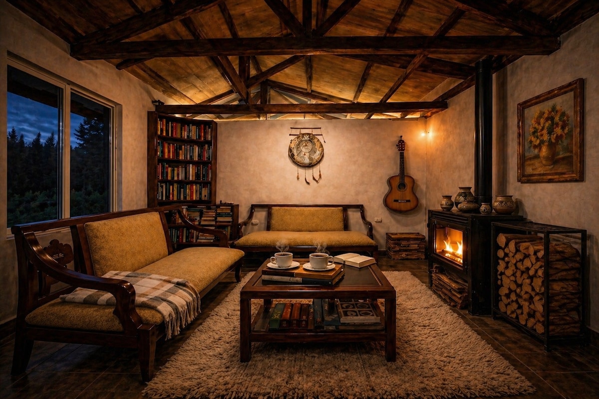 Καταφύγιο Ananda•Ιδιωτικό ξυλόσπιτο με τζάκι•Φωτιά
