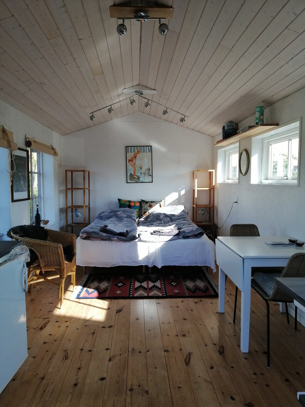 Glem dine bekymringer i denne rummelige og hyggelige bolig Nyd en lille miniferie på solskinsøen, tæt på strand og skov 🌳 Bygget 2024. Fuld isoleret med varmepumpe Egen terasse med havemøbler Mulighed for parkering på grunden, hvor der er egen indgang til boligen. Tekøkken med køleskab, miniovn, elkedel, kogeplader, toaster og div. køkkenredskaber Toilet/vask. Hårtørrer Brusekabine Inkl. sengelinned, håndklæder, viskestykker og klude.