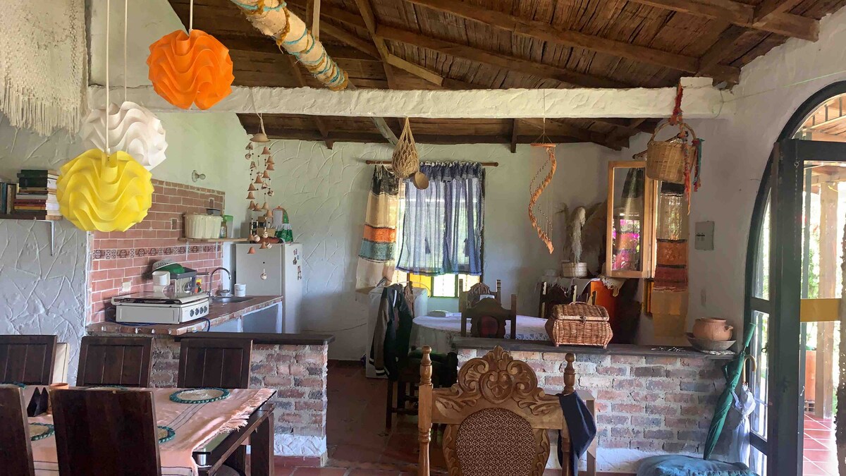 Στη διαδρομή που οδηγεί στο χιονισμένο Cocuy, κοντά στο φαράγγι Chicamocha, μπορείτε να ξεκουραστείτε στα ξυλόσπιτα του οικογενειακού μας κτήματος, στο τέλος ενός χωριού στην όμορφη βόρεια περιοχή της Boyacá. Ένα μέρος για να απολαύσετε την ηρεμία και το τοπίο, να φτιάξετε φωτιές, μπάρμπεκιου, να κάνετε ιππασία, να κάνετε οικολογική πεζοπορία ή απλώς να ξεκουραστείτε σε μια αιώρα.