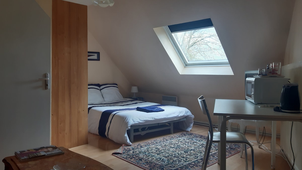 Άνετο pied à terre ιδανικό για 1 άτομο (διπλό κρεβάτι 1,20 μ.) για σύντομη ή μέτρια διαμονή. Η γειτονιά είναι πολύ ήσυχη. Υπάρχει η επιλογή να παρκάρετε στην πλατεία δωρεάν. Αυτό το κατάλυμα 15 τ.μ., με ντους, μικρή κουζίνα και τουαλέτα, είναι στον όροφο του κήπου, που μοιράζεται με το σπίτι μου. Η πρόσβαση είναι ανεξάρτητη. Ο σταθμός του τραμ Eau Blanche απέχει 4 λεπτά.