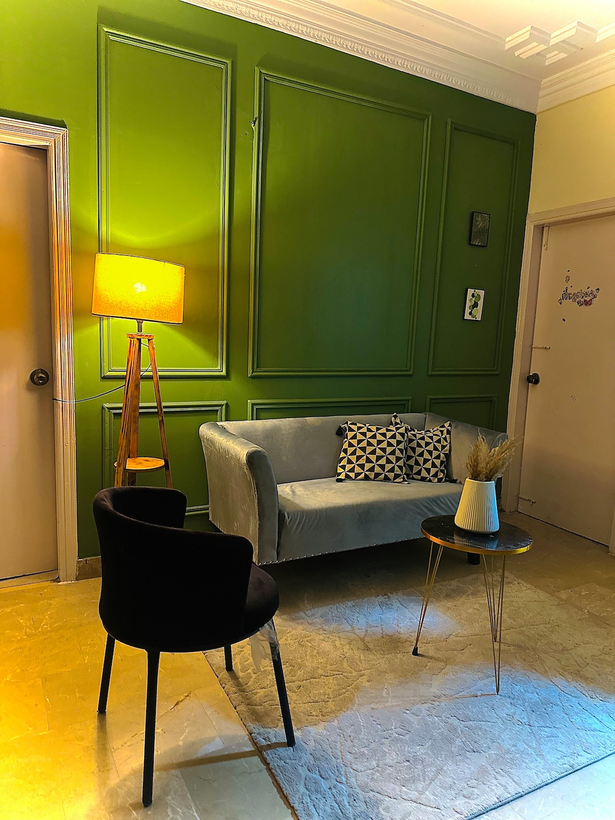 Unmarried couples are strictly not allowed. Modern open-layout NOX Studio featuring a king bed, cozy sofa, chilled AC, and chic wooden & raw design accents. Relax with a Smart TV and Wifi, Spacious washroom with an open wardrobe. Please note: no kitchen is available. Perfect for small families, friends, travelers or couples seeking comfort and style. Located in a secure building, close to shops, mosque, and banks combining modern aesthetics with convenience for a memorable stay.