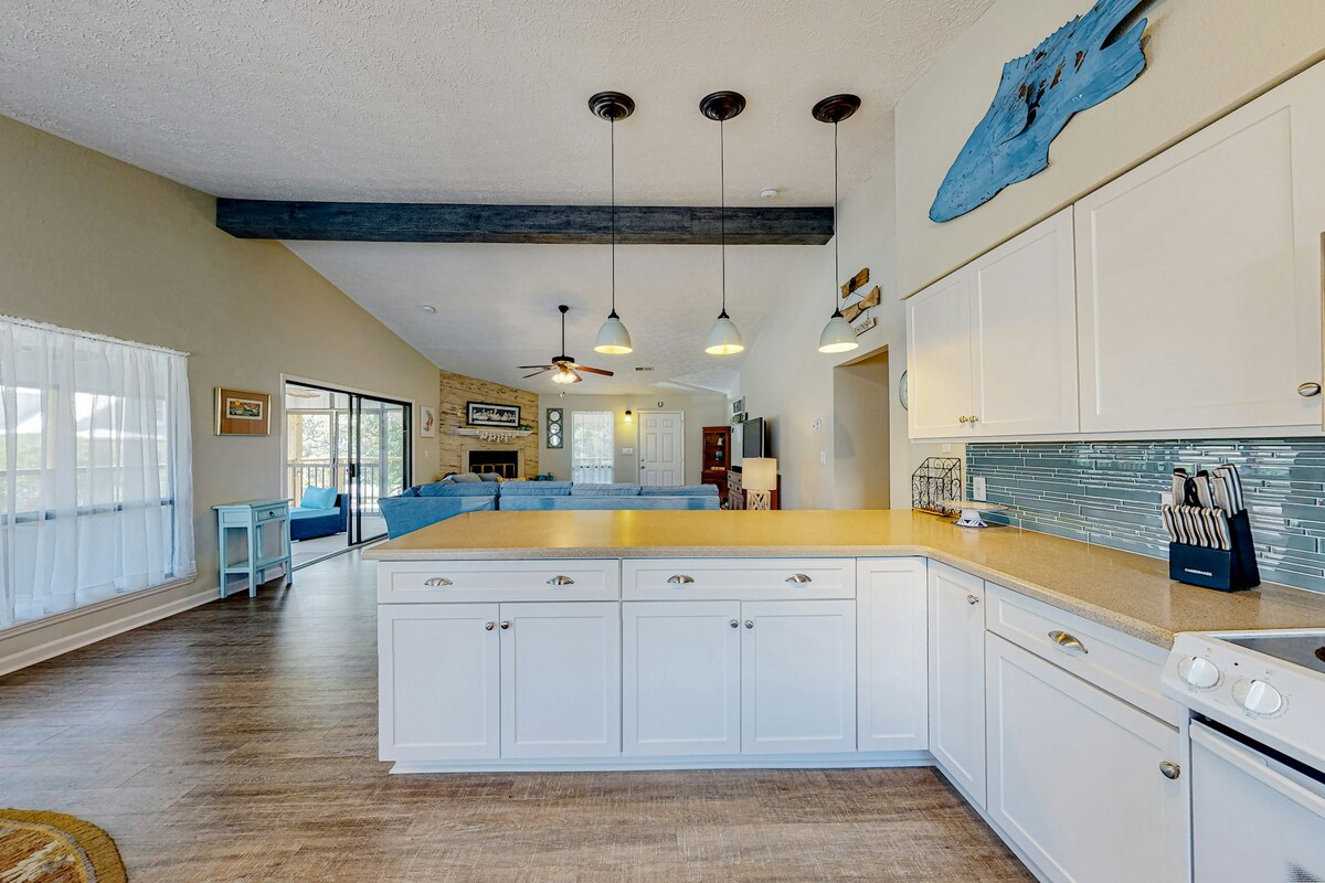 Λευκές αμμώδεις παραλίες, φαγητό και ψώνια σε κοντινή απόσταση. Αυτό το γοητευτικό εξοχικό 2 υπνοδωματίων, 2 μπάνιων προσφέρει παράκτια άνεση και χαλάρωση. Ο ανοιχτός χώρος διαβίωσης είναι φωτεινός και ευάερος. Η κουζίνα είναι ιδανική για διασκέδαση ή ήσυχα βράδια. Κάθε υπνοδωμάτιο διαθέτει το δικό του ιδιωτικό μπάνιο. Απολαύστε το κλειστό αίθριο της Φλόριντα, την ψησταριά μπάρμπεκιου, τις καρέκλες Adirondack και το υπαίθριο τζάκι. Άφθονο πάρκινγκ εκτός δρόμου, μαζί με χώρο στάθμευσης σκαφών και πρόσβαση σε γκαράζ για να ασφαλίσετε τα αξεσουάρ του σκάφους σας. Διατίθενται ενοικιάσεις 30 και 45 ημερών.