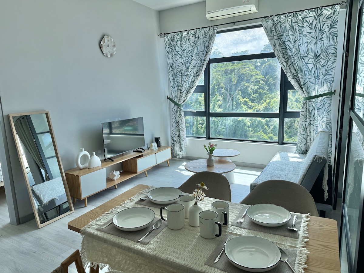 Η νεότερη ιδιοκτησία στην πόλη Kota Kinabalu με εκπληκτική θέα στον ωκεανό και το βουνό. Διαθέτει μονάδα δύο υπνοδωματίων με σαλόνι με καναπέ-κρεβάτι, καλά εξοπλισμένη κουζίνα με τραπεζαρία και ιδιωτικό μπάνιο με μπιντέ, στεγνωτήρα μαλλιών και δωρεάν προϊόντα περιποίησης. Προσφέρονται ψυγείο, εστία μαγειρέματος, κουζίνα ρυζιού και τοστιέρα, καθώς και βραστήρας. Suria Mall, Filipino Market Sabah, KK Esplanade και Atkinson Clock Tower, όλα σε κοντινή απόσταση. Το Διεθνές Αεροδρόμιο Kota Kinabalu απέχει μόλις 9 χιλιόμετρα από εμάς