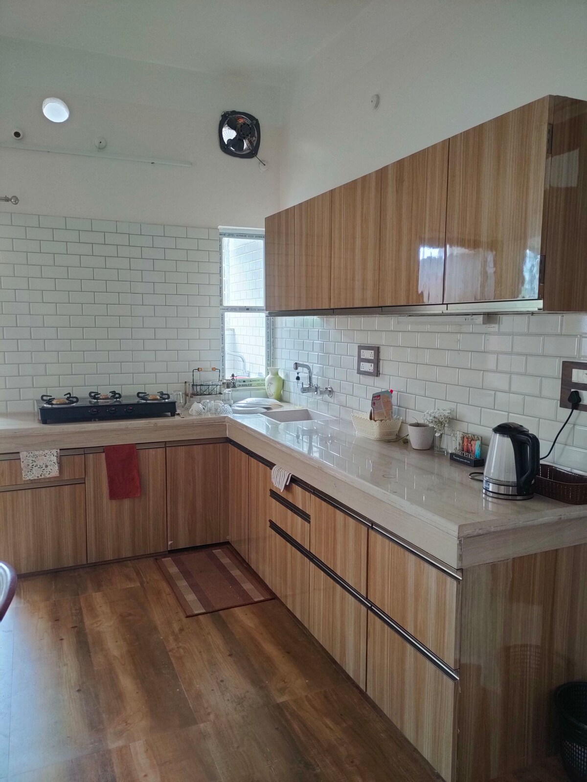 Experience a Bali-inspired retreat in Guwahati with modern interiors, a duplex double-height ceiling, and abundant sunlight. This apartment blends Assamese and Balinese cultures, featuring two bedrooms, a common washroom with a changing area, and lush indoor plants. Located in a posh neighborhood, you’ll be steps away from shopping malls and restaurants. Enjoy a cinematic experience with a 65-inch TV, and relax with attentive caretakers offering room service for your convenience.
