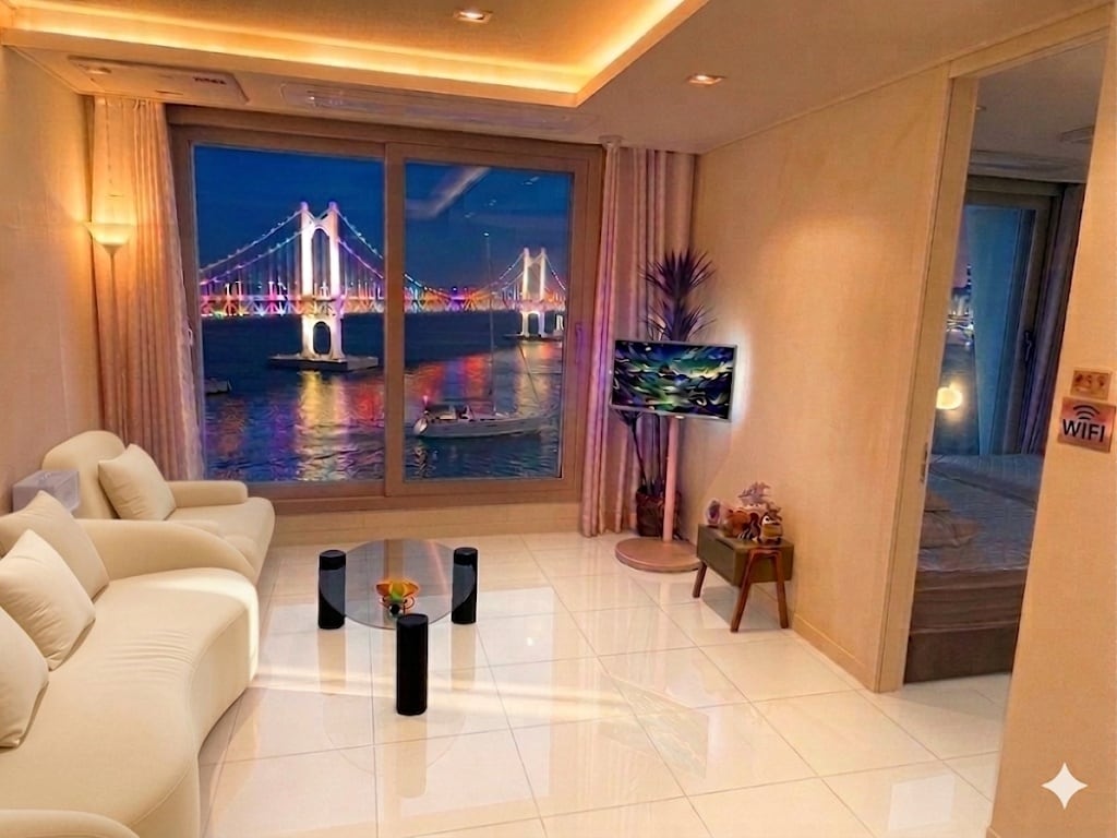 Αυτό είναι το Rose Stay ~ Το Dream Ace Gwangan είναι ένα εντυπωσιακό κατάλυμα όπου η πανοραμική θέα στη γέφυρα Gwangan και η όμορφη νυχτερινή θέα θα σας θεραπεύσουν. Ο συναισθηματικός χώρος διαβίωσης, ο οποίος συνδυάζει έναν άνετο καναπέ με καμπυλωτό σχεδιασμό και ένα μίνι τραπέζι, έχει θέα στον ωκεανό με θέα τη γέφυρα Gwangan και τη θάλασσα μέσα από το παράθυρο, καθιστώντας το ιδανικό μέρος για να χαλαρώσετε και να περάσετε ρομαντικά. Στην τηλεόραση και τον προβολέα, μπορείτε να απολαύσετε μια ποικιλία από λίστες αναπαραγωγής και βίντεο για να κάνετε το ταξίδι σας πιο άνετο. Γαλάζια θάλασσα και όμορφη νυχτερινή θέα, Σας υποσχόμαστε μια ξεχωριστή μέρα στο Dream Ace Gwangan, ένα συναισθηματικό μέρος ανάπαυσης με άνετο εσωτερικό και υπέροχη πανοραμική θέα στον ωκεανό. Απολαύστε τη θέα στον ωκεανό, τη θέα στην πόλη και τη θέα στη γέφυρα Gwangan όπου μπορείτε να θαυμάσετε ~ ~