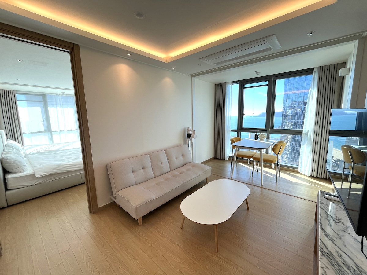 Διπλή πλευρική θέα στον ωκεανό. Θέα στον ωκεανό από το κρεβάτι. Δωμάτιο για ζευγάρια. Αυτοεξυπηρέτηση 5 λεπτά με τα πόδια από την παραλία Haeundae.Μείνετε σε ένα πολυτελές και λευκό κατάλυμα που μπορεί να χρησιμοποιηθεί ως πλυντήριο, στεγνωτήριο και styler. Haeundae Ocean View # Διαμονή στο Μπουζάν # Καταφύγιο δίπλα στη θάλασσα # δωμάτιο για ζευγάρια #ΆνετοΔωμάτιοΜεΘέα #ΜινιμαλΕσωτερικό #ΘεραπευτικήΔιαμονή