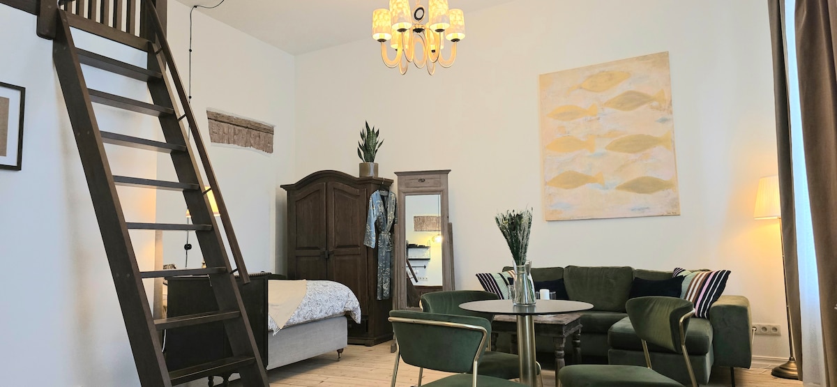 Άνετη σοφίτα στην παλιά πόλη της Χάαψαλου, 100 μέτρα από τον παραλιακό δρόμο και το εμβληματικό Kuursaal. Εκτεθειμένα τούβλα, ξύλινα δάπεδα, τζάκι και ντουζιέρα με γυάλινο τοίχωμα. Φιλοξενεί έως 4 άτομα — υπέρδιπλο κρεβάτι, καναπέ-κρεβάτι και βρεφικό κρεβάτι. Πλήρως εξοπλισμένη κουζίνα, κλιματισμός, δωρεάν πάρκινγκ και ιδιωτική πίσω αυλή. Κάστρο, καφετέριες και καταστήματα βρίσκονται όλα σε κοντινή απόσταση με τα πόδια. Ιδανικό για ζευγάρια ή οικογένειες.